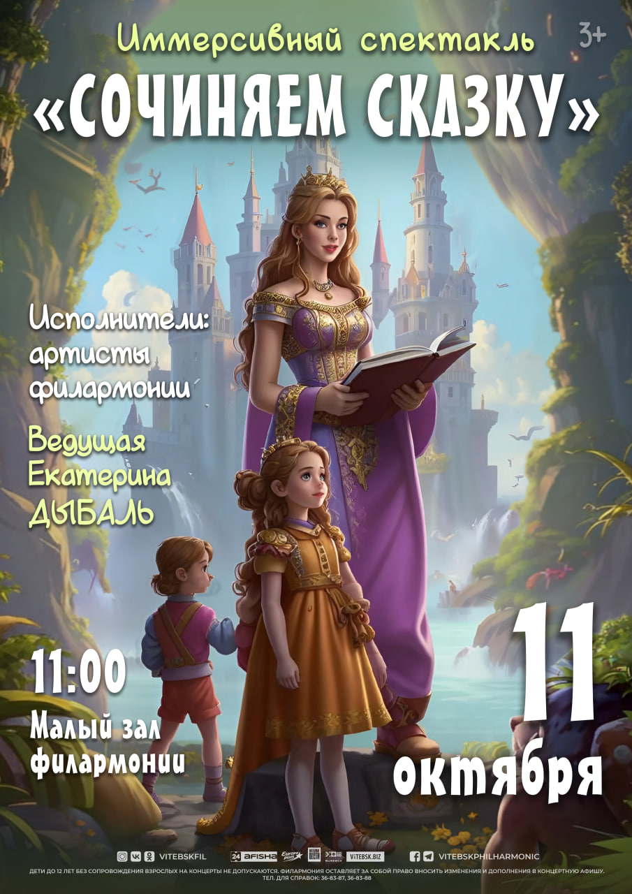 «Сочиняем сказку» – это не просто представление, а интерактивное приключение, в котором дети станут главными героями. Вместе с опытными актерами они сочинят сказку, выбрав сюжет, персонажей и развязку по своей фантазии. Любимые герои объединяются вместе, чтобы раскрыть тайны и загадки.