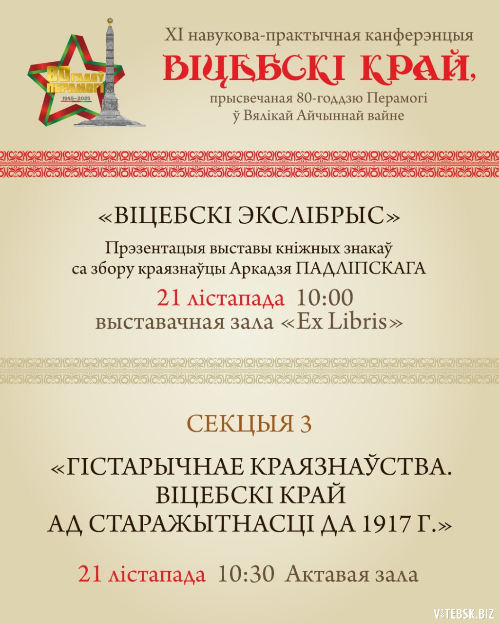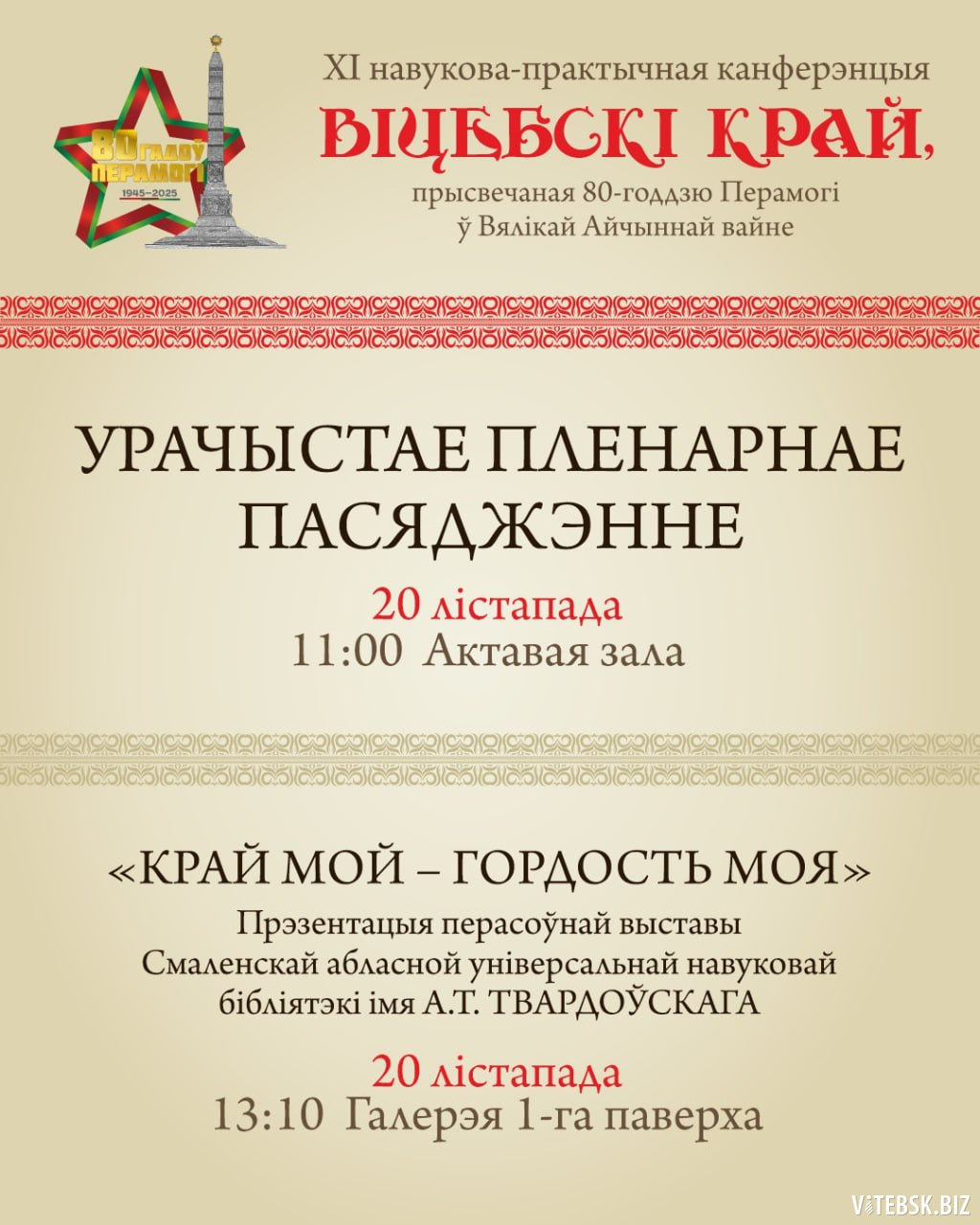 20-21 лістапада ў Віцебскай абласной бібліятэцы адбудзецца XI навукова-практычная канферэнцыя «Віцебскі край», якая вядомая кожнаму, хто цікавіцца гісторыяй горада над Дзвіной.