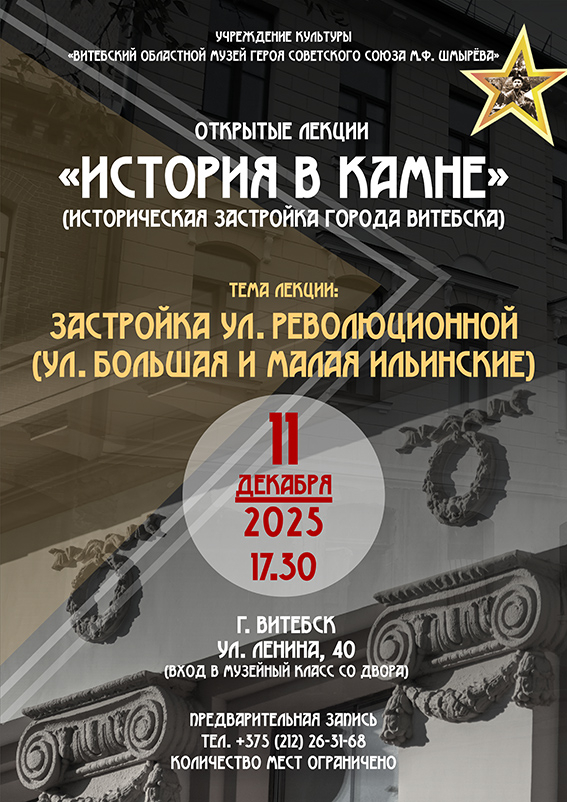 Лекция позволит слушателям посмотреть по-новому на архитектурный облик улиц, вдохновит на изучение культурного наследия г. Витебска. Лекция рассчитана на широкий круг публики в различных сферах деятельности и областях знаний: краеведения, истории, архитектуры, экскурсоведения и др.