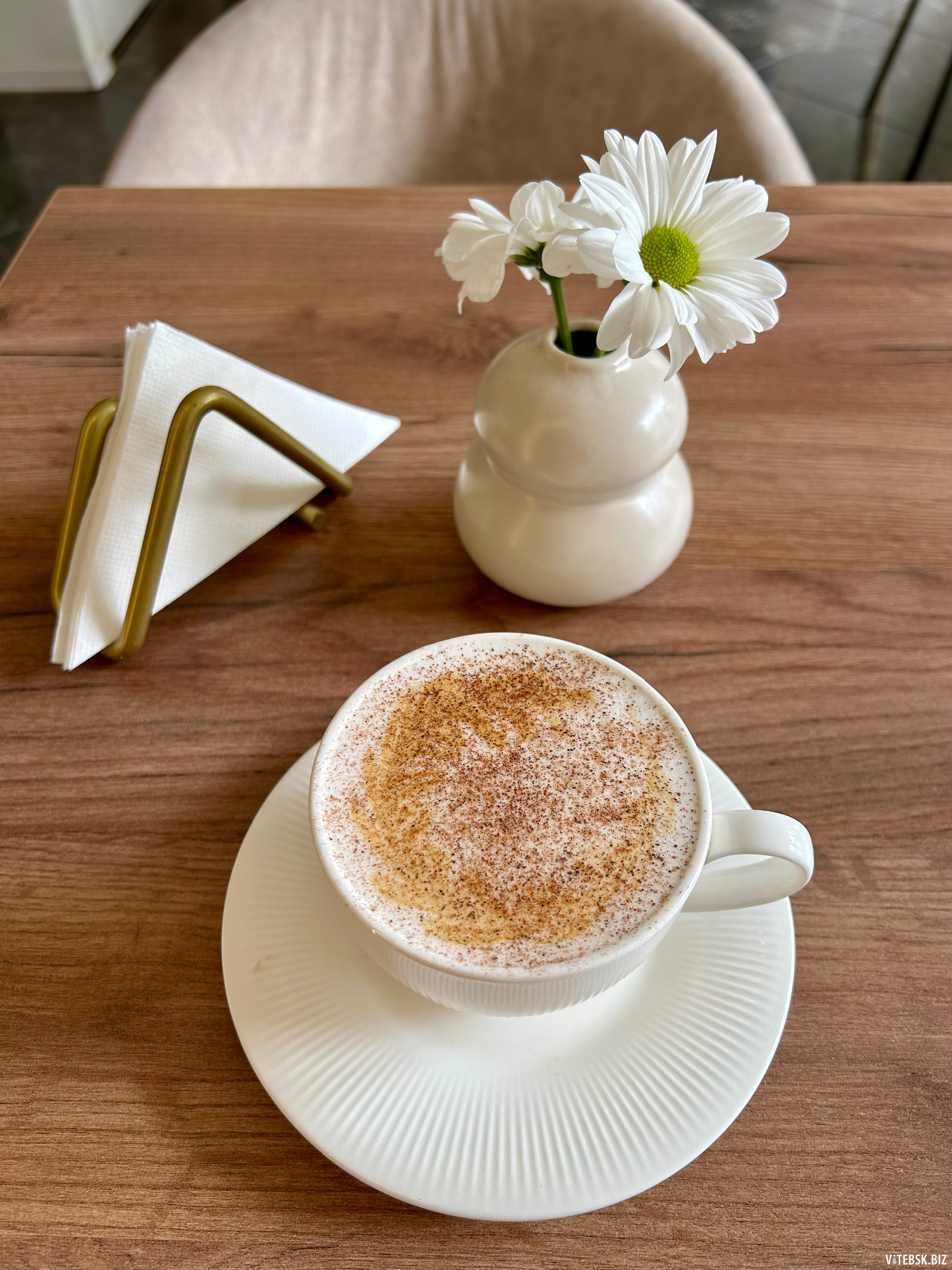 За новым заведением наблюдала в сетях и оно мне понравилось, но зайти довелось только сейчас. Интерьер очень приятный, светлый, стильный. Огромное зеркало во всю стену и расширяет пространство и притягивает любителей выложить себя в сторис. В туалете тоже в таком ограниченном пространстве все очень красиво и чисто, кран просто сияет.