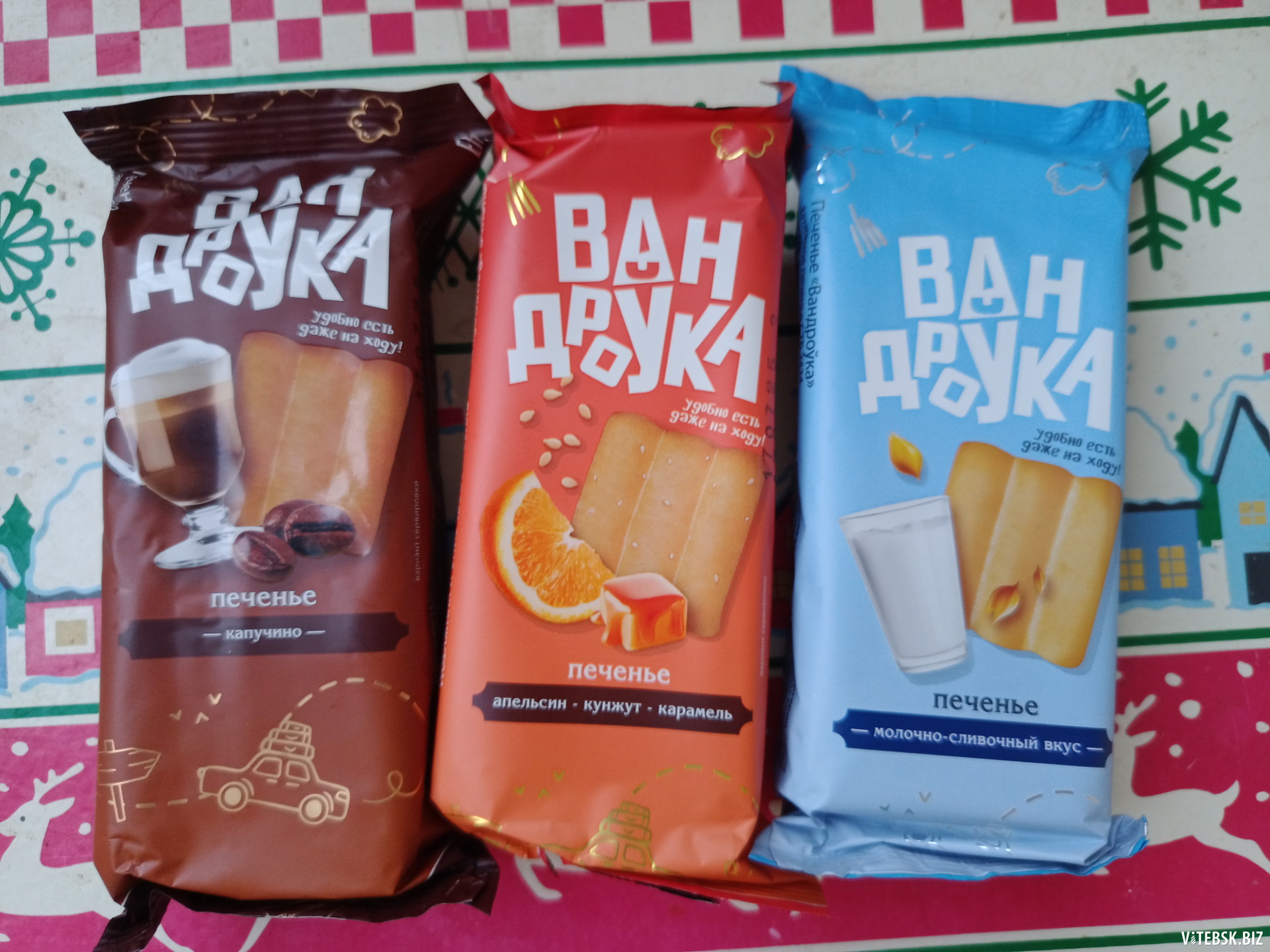 В фирменных магазинах Каравая Придвинья появилась классная новинка - затяжное печенье "Вандроука" с тремя разными вкусами (капучино, молочно - сливочный вкус и апельсин - кунжут - карамель). Печенье мне понравилось тем, что хрустящее и натуральное.