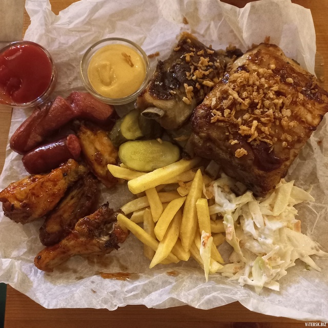 Рестобар "Белый лис" -заведение,которое периодически посещаем.Отзывы на них разные,но у нас положительное впечатление каждый раз.Кухня нравится.Официанты стараются.Постоянно сохраняют предложение "минус 40% на все меню до 16.00",в любой день.Пришли в этот раз на новое предложение "Oktoberfest".Сет отразила в фото.Особенно хороши в нем были ребра.Хотелось чут больше маринованного огурчика,а то его там чуть нашли.Вдвоем наелись сытно.Предупредили,что ожидание от часа,но принесли быстро и в течении часа мы уже и дождались сет и сьели...