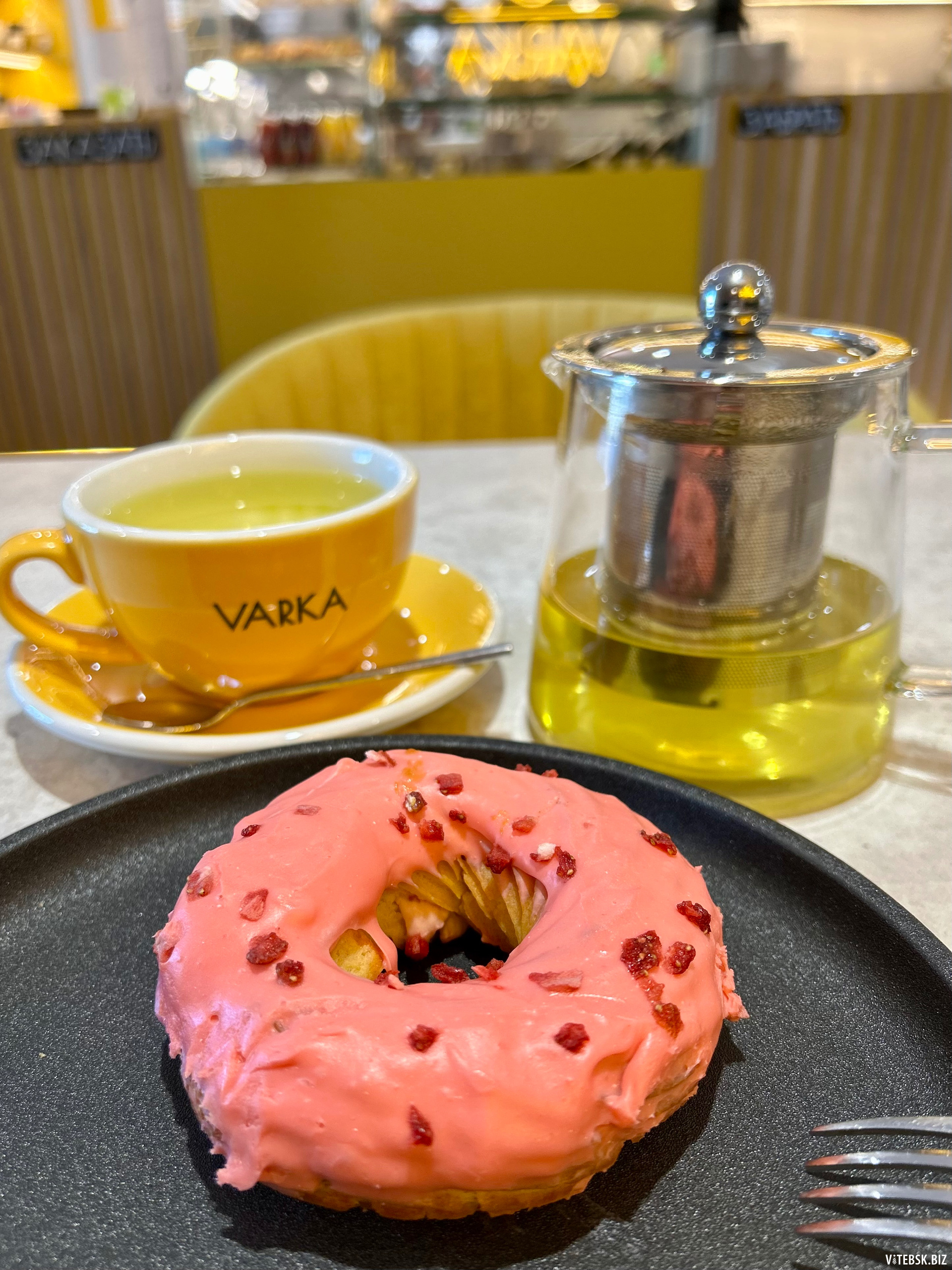Люблю эту кофейню. Всегда уютно, приветливое обслуживание, система скидок, сезонные предложения. Случайно попала на акцию к любому напитку малиновое кольцо в подарок. Взяла очень вкусный гречишный чай.