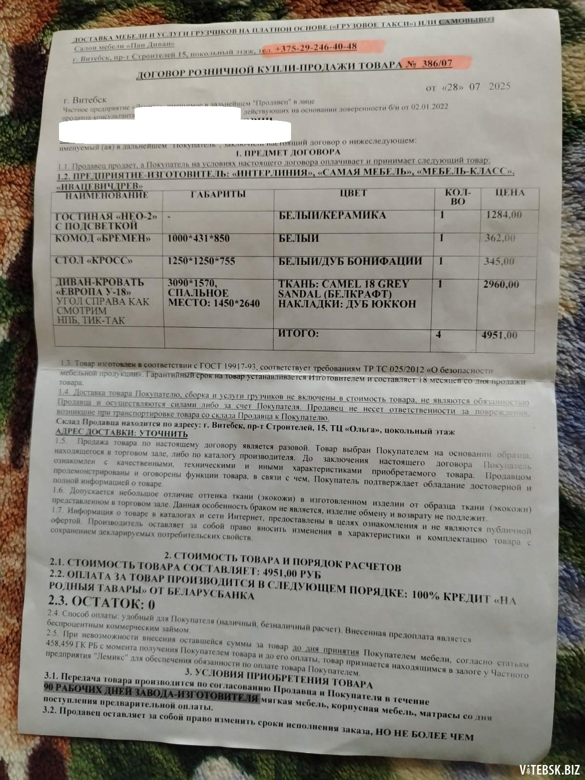 Заказали диван 28 июля . На данный момент 4 декабря еще не пришел . По договору 90 РАБОЧИХ дней уже истекли и теперь ссылаются на дополнительные 30 рабочих дней. Отношения отвратительное, грубые, хомят. Заказ сделали при 100% оплате. Очень сожалею, что связались с этим магазинам. Так что прежде чем заказывать здесь мебель 100 раз подумайте и обходите их стороной. В дополнение хочу сказать, что заказали письменный стол, так нас даже не сызволили уведомить, что фабрика распалась и стол никто не делает пока мы сами не обратились.