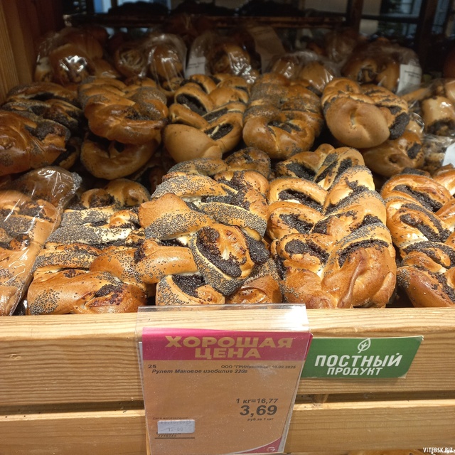 Недавно один из минских блогеров тестил булки с маком от самых дорогих до бюджетных вариантов. В топ попала булка от «Green» под названием рулет «Маковое изобилие». Полностью согласна! Одна из моих любимых булочек с маком уже многие годы. Долгое время она стоила 1,99, а потом резко стала 3 с копейками. Много ароматной маковой начинки, вкусное тесто. Единственная просьба как-то аккуратнее выпекать, а то некоторые булочки выглядят так, будто по ним каток проехал. А так - спасибо за удовольствие...