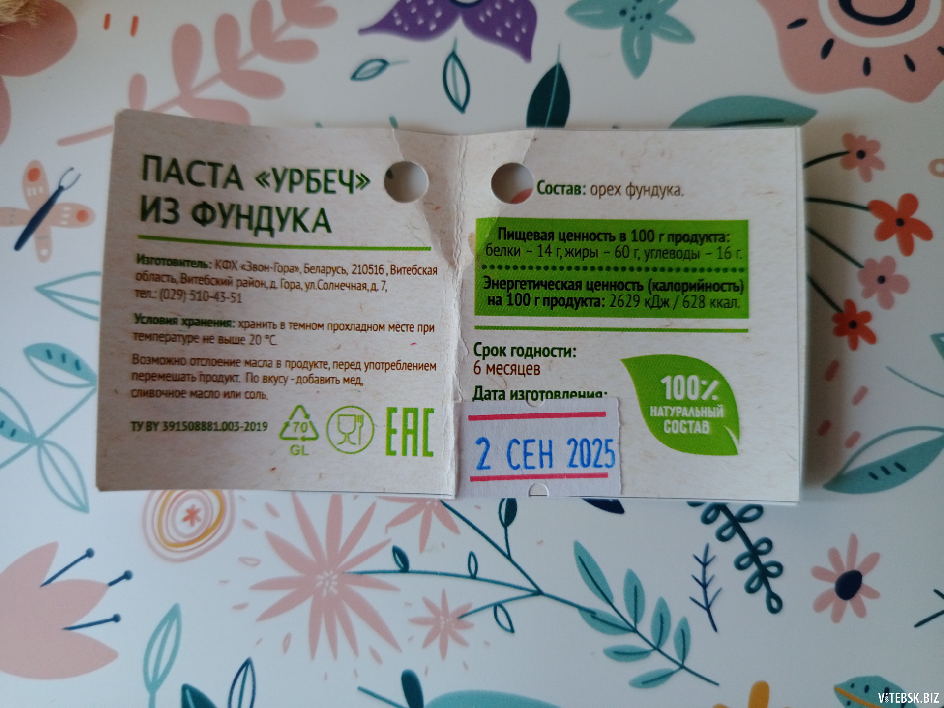 Хотела бы отметить такой продукт как пасту из фундука "Урбеч" витебского производства - КФХ "Звон -Гора". Ранее такую пасту не пробовала и особо не знала о ее существовании. Поэтому прикупила себе одну баночку на дегустацию, так как люблю пасты из разных видов орехов. Итак, эта паста в стеклянной баночке с закручивающейся крышкой, декорированная тканью. В баночке 230 граммов продукта. По консистенции эта паста действительно похожа на урбеч - густая тягучая маслянистая масса. Перед употреблением продукт необходимо перемешивать до однородного состояния. Для меня это неплохой вариант для бутербродов с чаем или с чем -либо ещё, а вот в чистом виде мне она не очень понравилась, сильно вяжет. В принципе, хорошая паста. Также этого производителя есть ещё аналогичные пасты только из миндаля, фисташки, грецкого ореха. Приобрела эту пасту в павильоне "Халва" в Евроопте на Строителей. Стоимость одной баночки - 16 рублей.