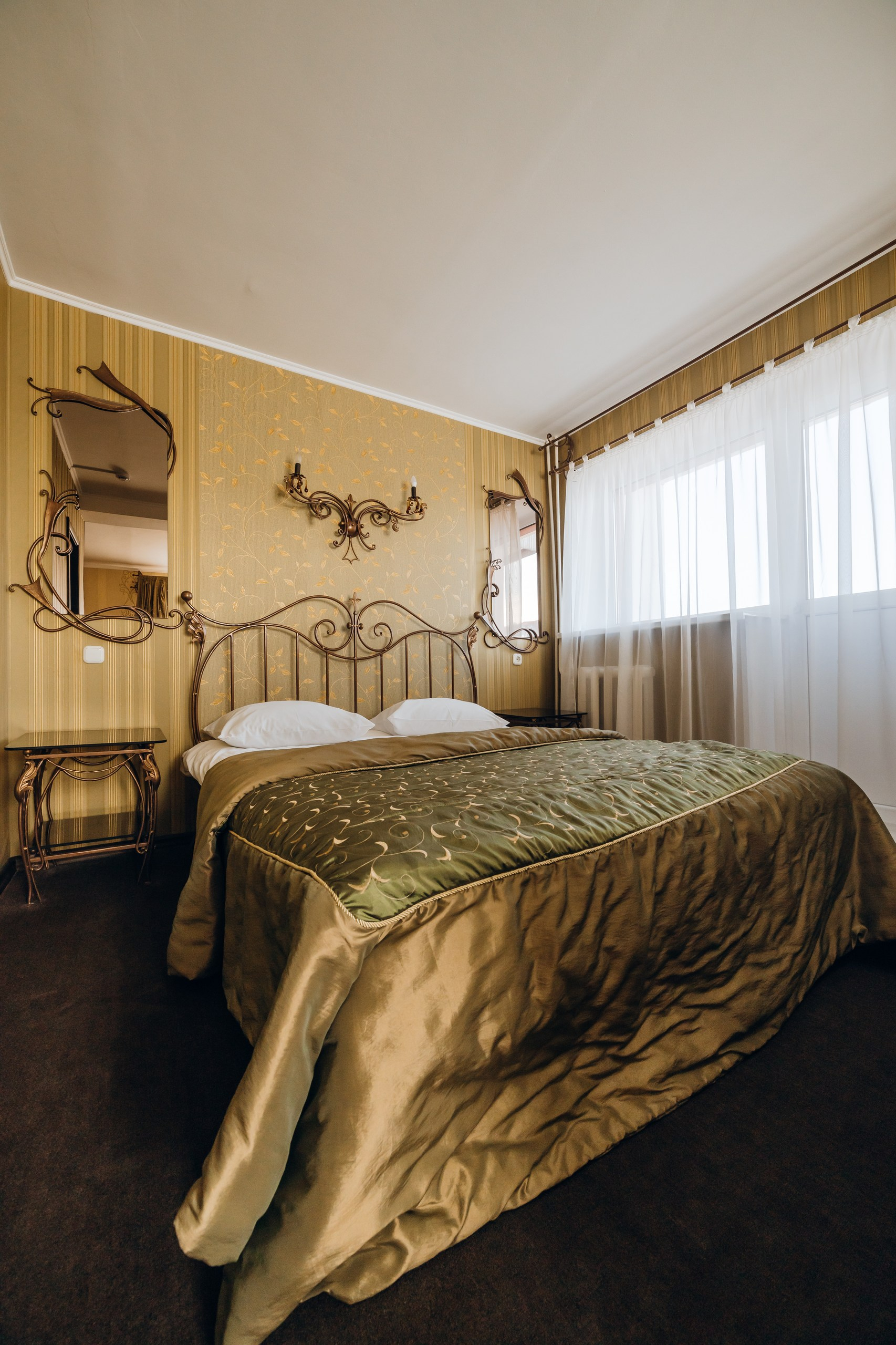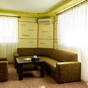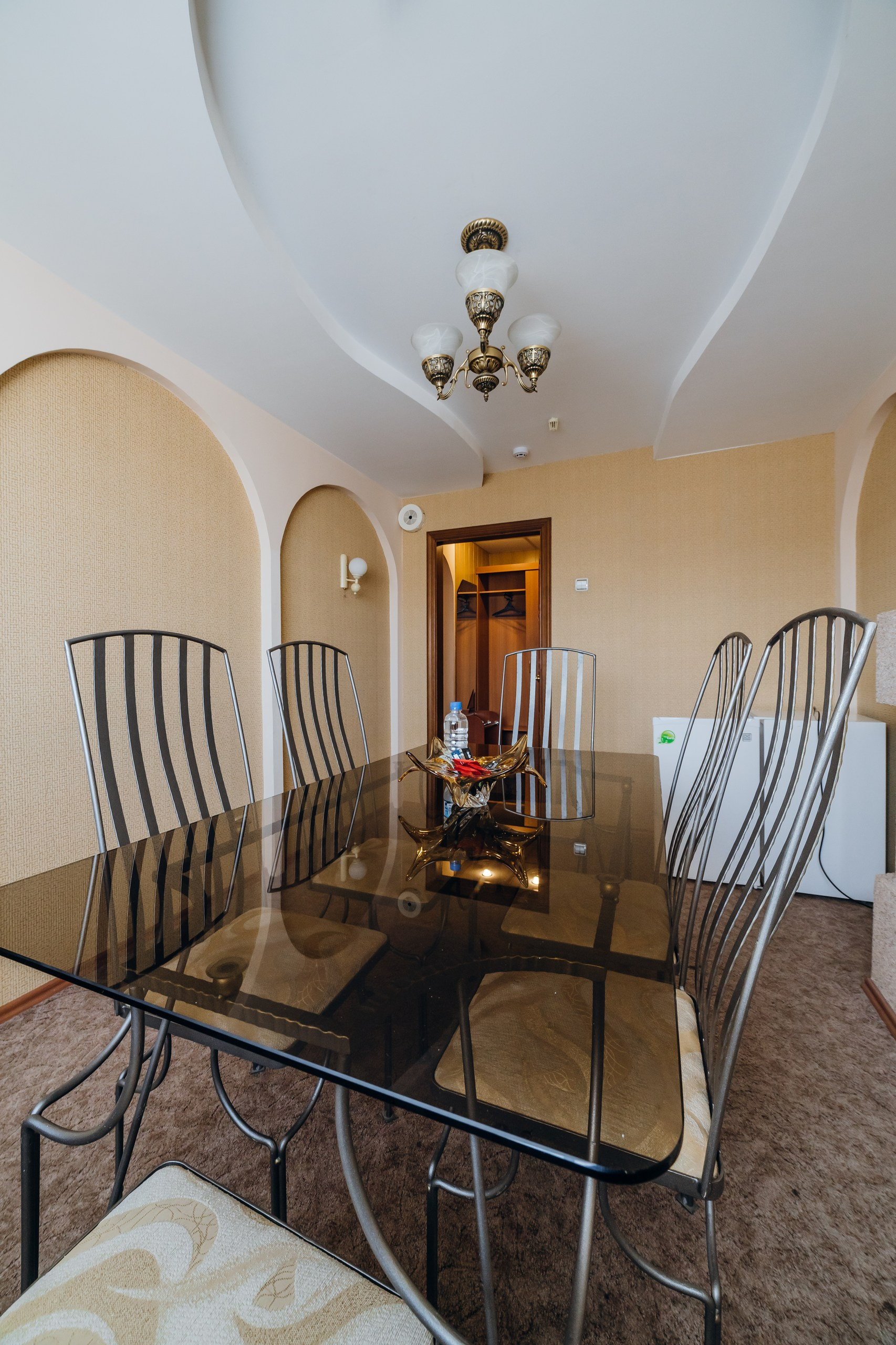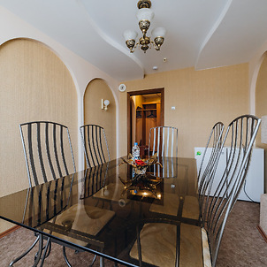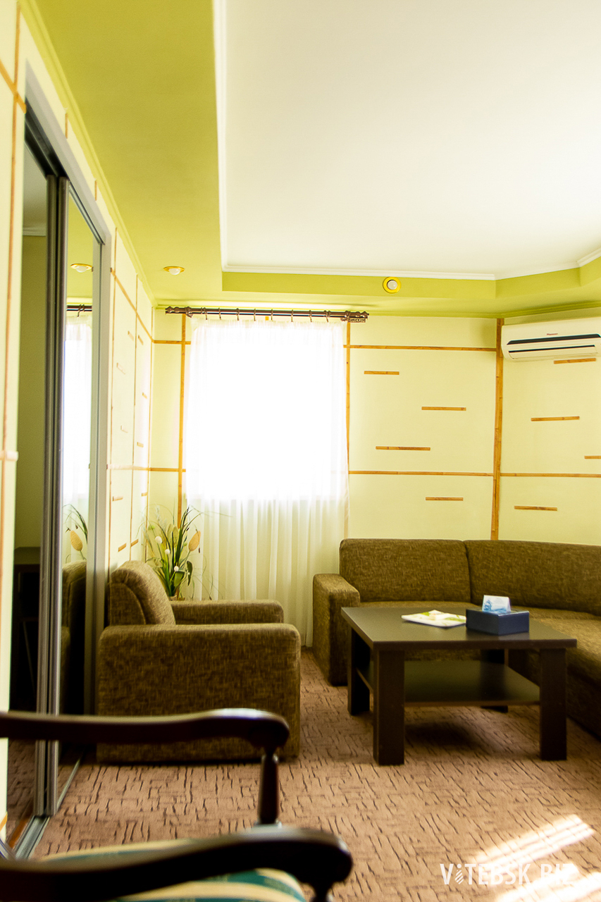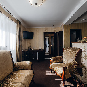 № 524. «Гостиный двор». Входит в высшую категорию гостиничных номеров. К услугам: кондиционер, мини-бар, спутниковое TV, телефон, сейф, ванна, фен, халаты, набор посуды, Wi-Fi.