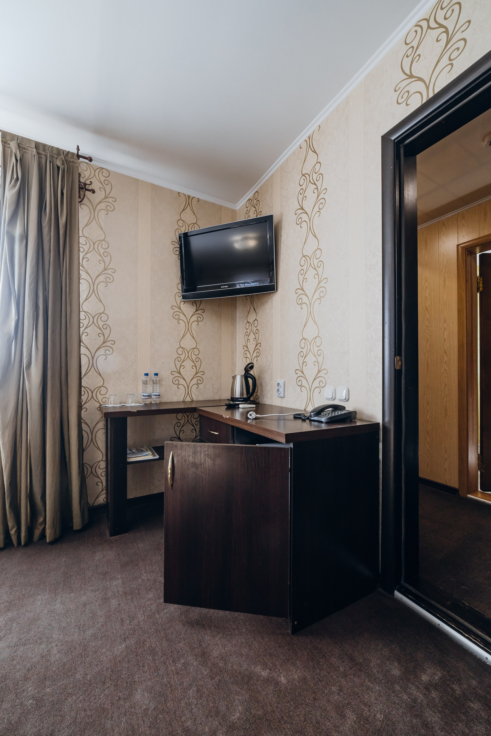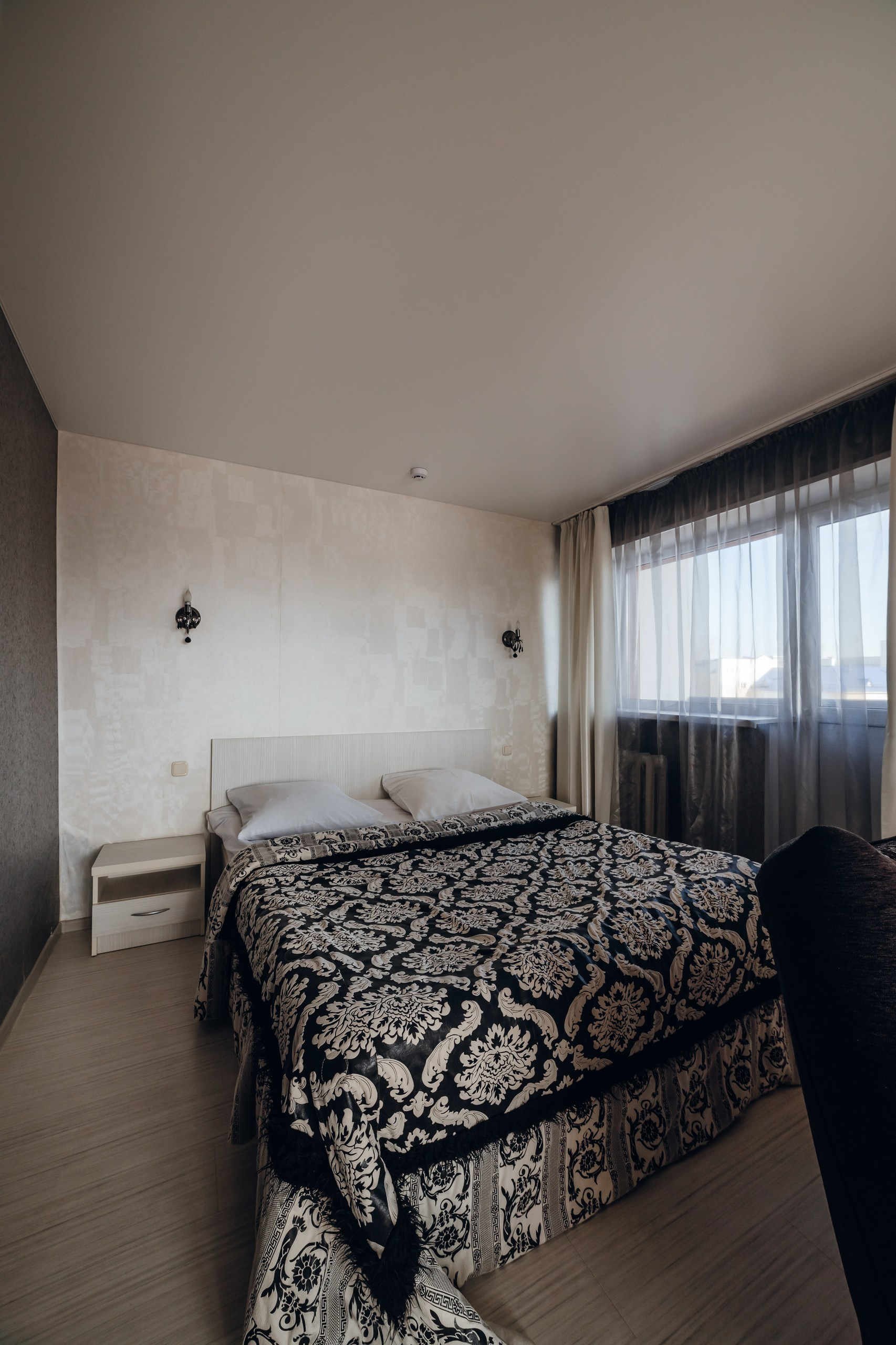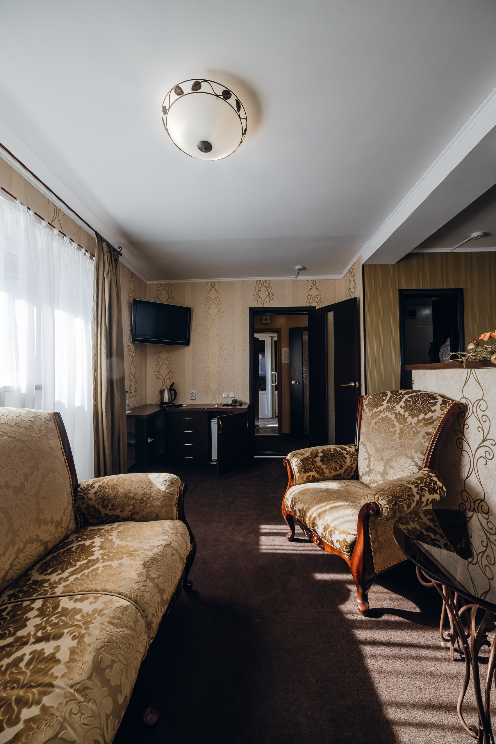№ 524. «Гостиный двор». Входит в высшую категорию гостиничных номеров. К услугам: кондиционер, мини-бар, спутниковое TV, телефон, сейф, ванна, фен, халаты, набор посуды, Wi-Fi.