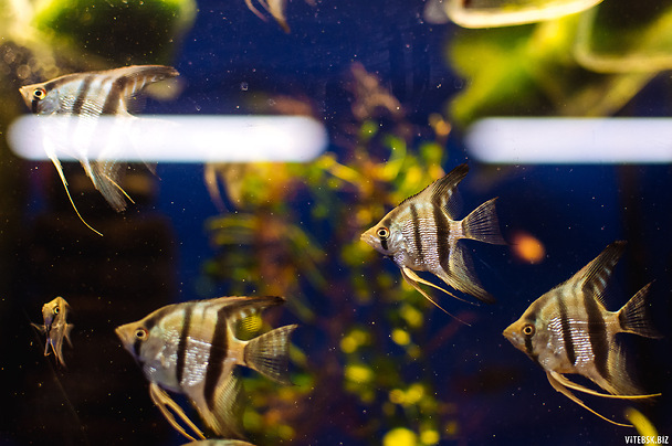 В «Аквариуме» представлено около семидесяти видов аквариумных растений и рыбок! Вот парочка из них — Телескоп (это такой глазастый парень), Лабео, мраморная Боция (она как будто с другой планеты), Макрогнатус, Коридорас панда (прямо как маленький мишка в воде), Родостомус и ещё куча классных ребят.