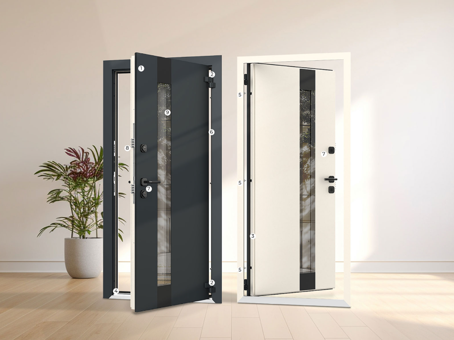 Двери с терморазрывом — новое слово в защите дома от холода и сырости. Конструкция таких моделей включает в себя пробковый лист — природный теплоизолирующий материал. Он помещается между наружной и внутренней частями двери, полностью исключая теплообмен между ними.