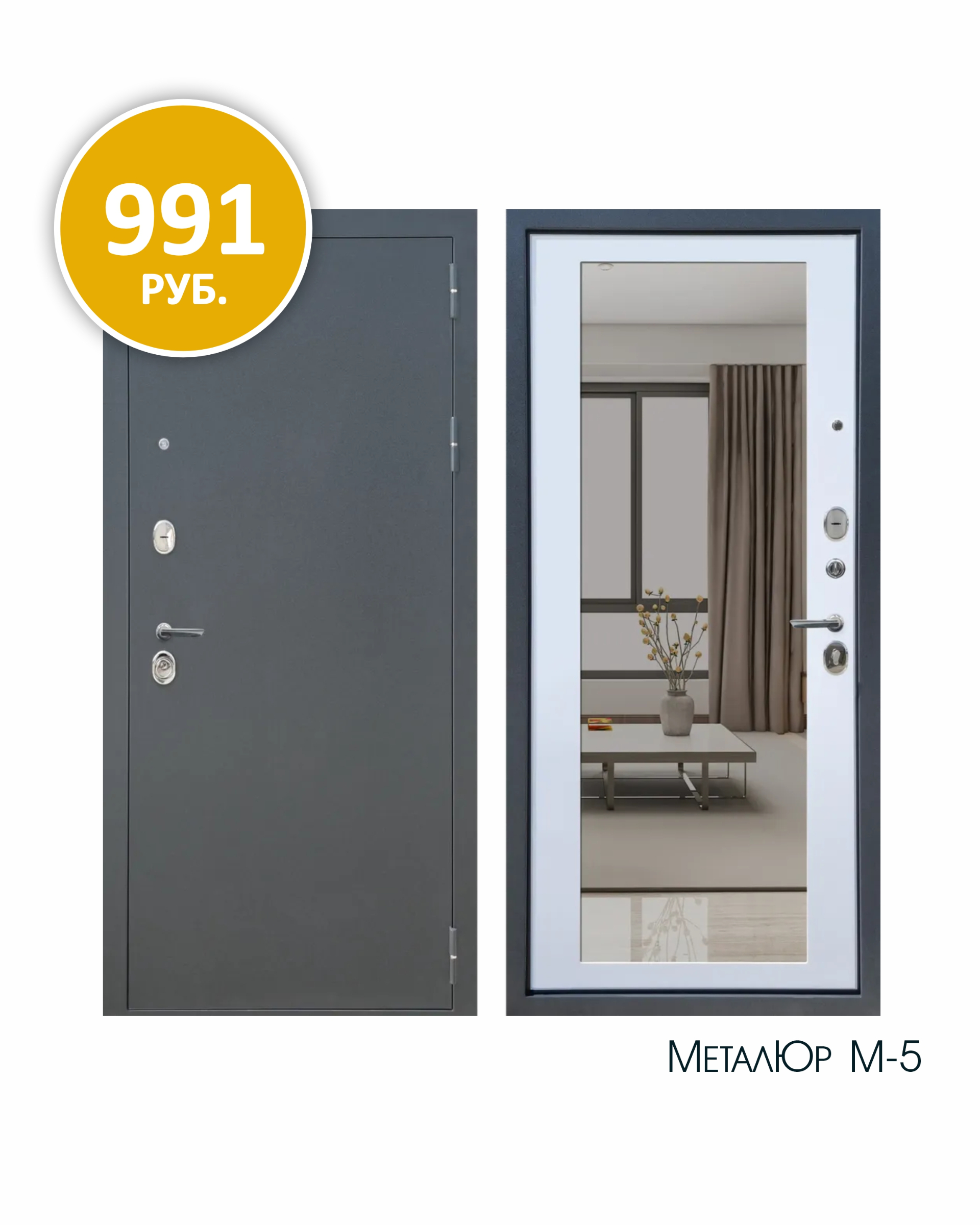 М-5 оснащена 3-х контурным уплотнением, которая защитит любое помещение от продувания и утечек тепла. Немаловажным плюсом модели станет наличие огромного зеркала на внутренней стороне.