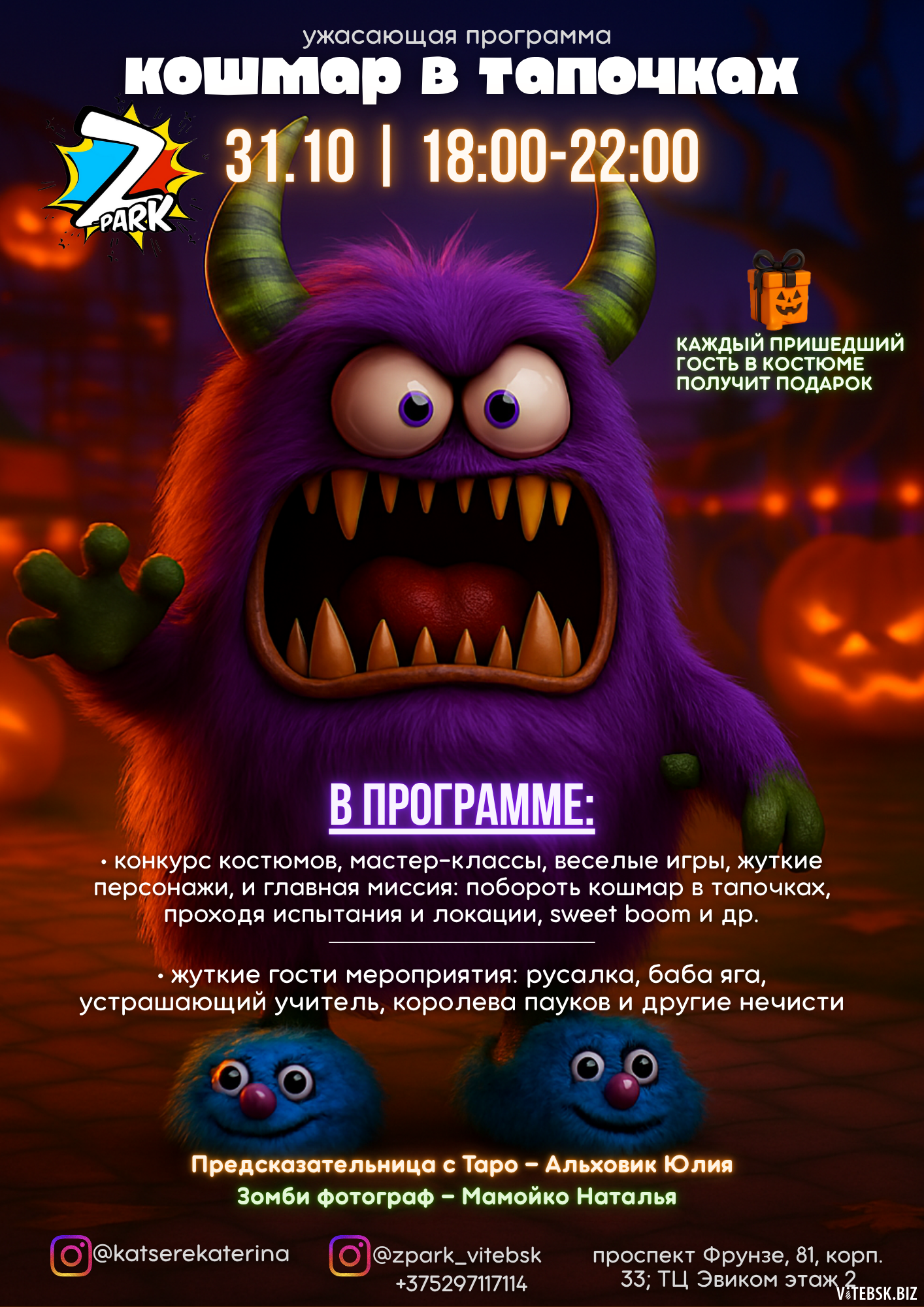 Внимание! В Z-park пробрался Кошмар в тапочках — главный босс нечисти. Он уже строит свои пакости, но мы знаем, как его победить: весельем, креативом и командной магией!