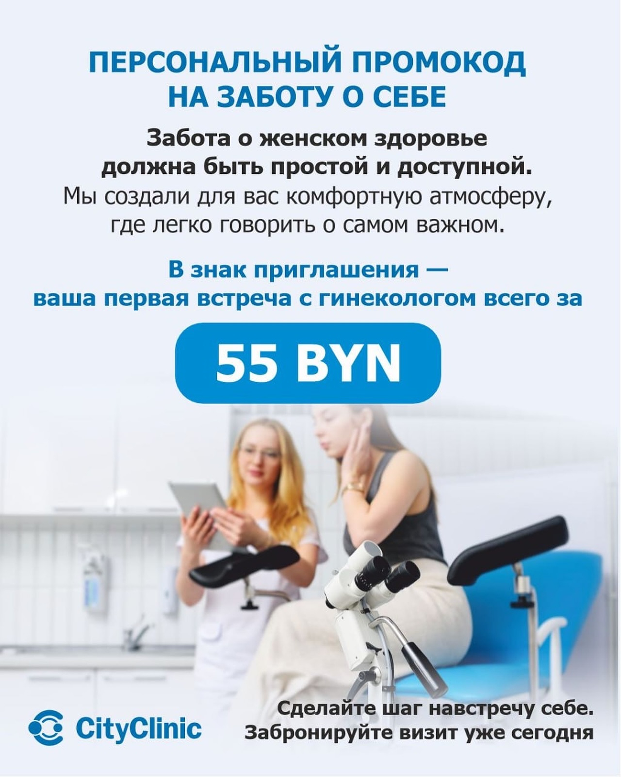 Также на первый визит к гинекологу действует специальная цена — всего за 55 BYN!