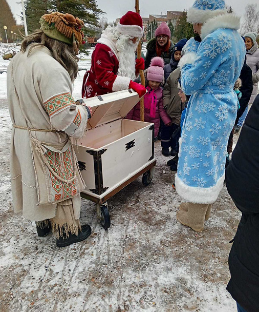 Встреча с главными волшебниками праздника — Дедом Морозом и Снегурочкой, которые приготовили для каждого ребенка заветный подарок.