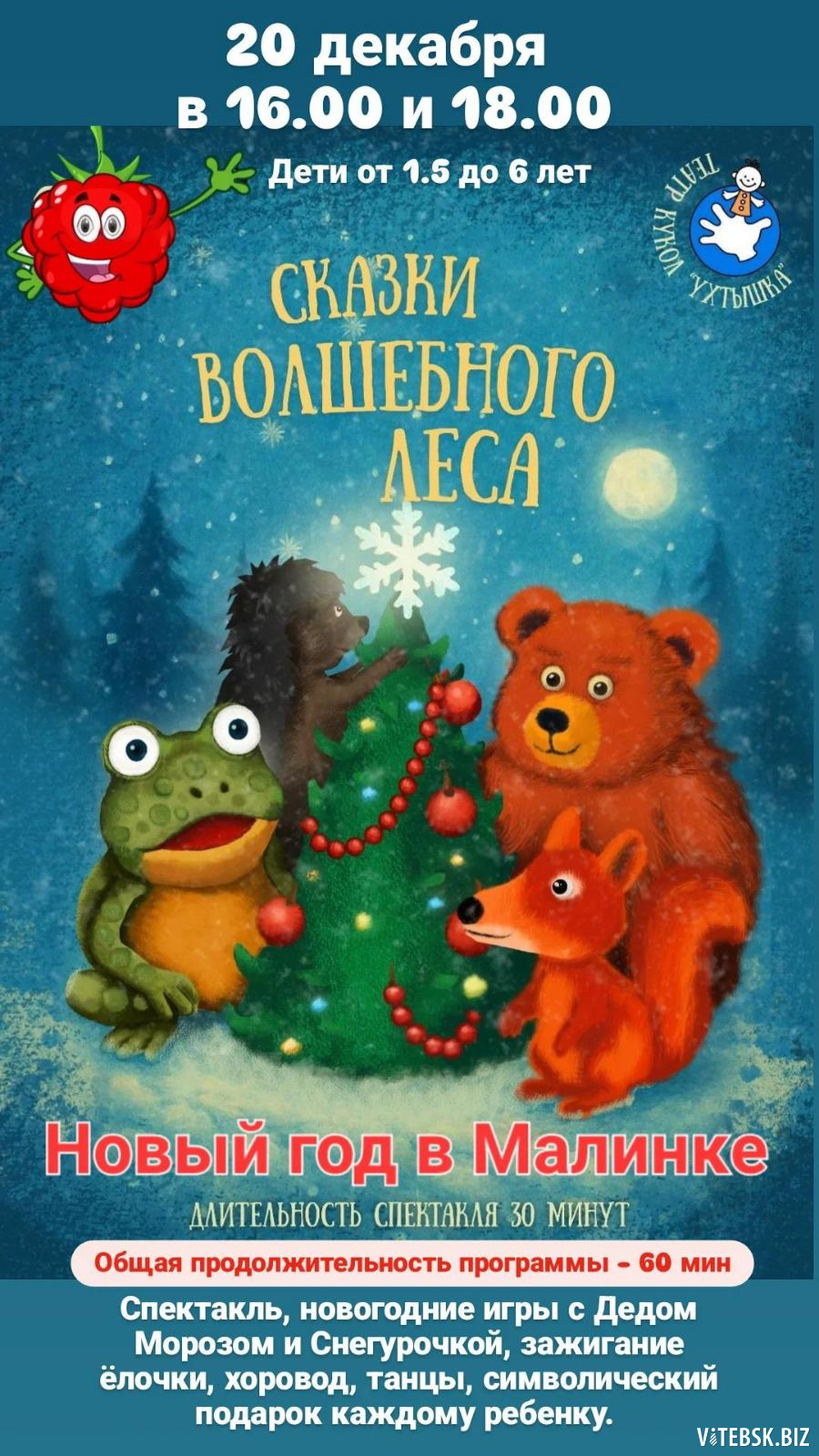 Они познакомят деток с удивительным новогодним представлением «Сказки волшебного леса». Продолжительность новогоднего спектакля — 30 минут. После представления деток ждут занимательные игры с Дедом Морозом и Снегурочкой, зажигание ёлочки, новогодний хоровод, песни, танцы и, конечно же, символические подарки от самого главного новогоднего героя.