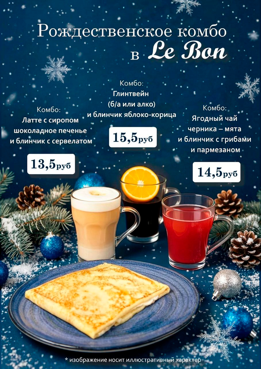 Праздники на пороге, и сеть французских блинных Le Bon представляет фирменное рождественское комбо. Можно выбрать любой из 3-х вариантов или попробовать сразу все.