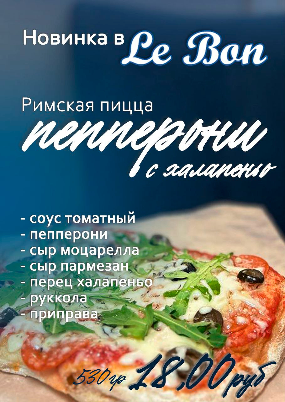 Хочется поострее? Новинка в сети Le Bon будет кстати! Здесь можно попробовать новую римскую пиццу «Пепперони с халапеньо».