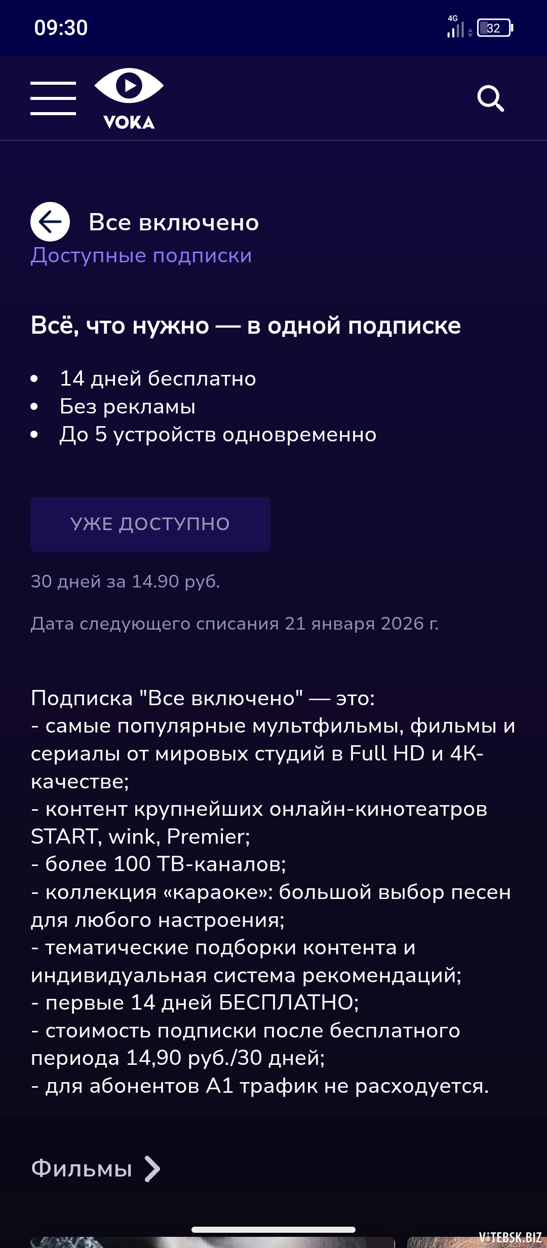 Давно была наслышана про Voka от А1, а точнее про их проект - фильмы на белорусском языке. Эта идея мне сначала показалась немного "чудной", так как все уже привыкли к русскому языку, и знакомые всем фильмы уже на белорусском языке будут восприниматься совсем по другому. А с другой стороны - мне все - таки было интересно узнать как это будет на мове. А вот, недавно мне попадается на глаза реклама про 60 дней бесплатной подписки на "Все включено". И это просто прекрасный повод подписаться на Вока и начать все же смотреть знакомые фильма уже на белорусском языке, да и не только. Ещё мне понравился раздел "Караоке" - неожиданно, но очень классное развлечение. Недавно начала использовать Voka, и пока у меня только положительное впечатление от него. Надеюсь в дальнейшем оно таким же и останется.