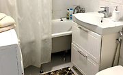 В ванной комнате- ванна, туалет, ванно-косметические принадлежности и стиральная машина.