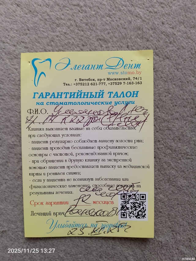 Читать полностью2 недели назад удаляла в данной стоматологии зуб ,все прошло хорошо,очень понравился общительный и дружелюбный персонал.Хочу выразить отдельную благодарность врачу Радкевич Алесе Витальевне и медицинской сестре Галинской Ольге за профессионализм и вежливое обращение! К сожалению чек выбросила. Обязательно вернусь сюда на лечение...