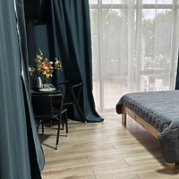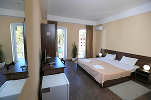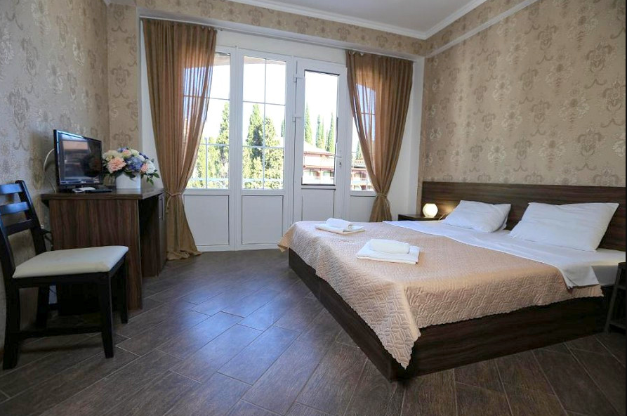 Cовременный 2-х этажный уютный отель со светлыми уютными номера.На территории отеля есть мангал,детская площадка,беседка,собственный сад и места для отдыха.В месте общего пользования имеется утюг и гладильная доска. Обеспечивается размещение в 2-х, 3-х местных номерах, а также имеется дом для троих под ключ. В каждом номере отеля есть: душ, санузел, ТВ, холодильник, сплит-система, фен, чайник, диван, двуспальная кровать.