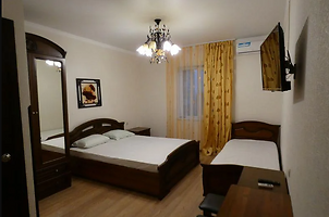 Обеспечивается проживание 2-х,3-х,4-х местных и 2-х комнатном номере. Все номера оборудованы кондиционерами и телевизорами, отдельными холодильниками, санузлом с душем и интернетом работающим на всей территории гостевого дома.