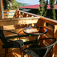 Гостевой дом представляет cобой 2-х этажное новое деревянное здание с отличным ремонтом, зеленым двором, беседкой, местом отдыха, зоной барбекю, бесплатный Wi-Fi. Непосредственно на территории гостиницы находится обустроенный частный пляж с шезлонгами и бар.