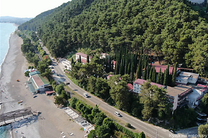 Пансионат «Солнечный» находится в красивом месте на склоне горы в поселке Багрипш (Холодная речка). Собственный песчано-галечный пляж находится в 400 метрах от корпуса и встретит вас чистейшей морской водой, к пляжу есть спуск на лифте.