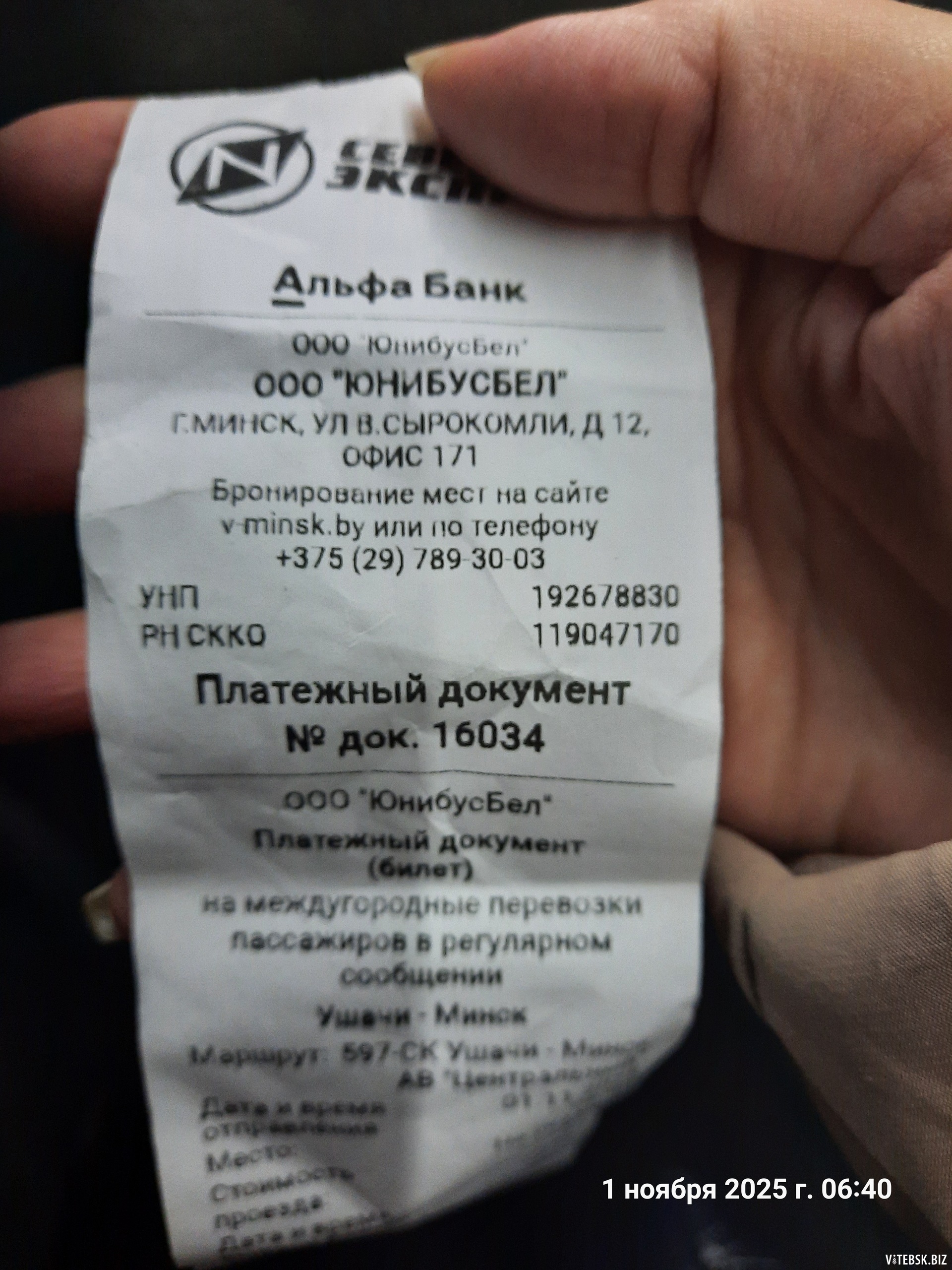 Сегодня 1.11.25 выехала по маршруту Ушачи-Минск. Отправление в 6 утра. Накануне кто-то позвонил и сказал что приходите в 5-45. Я в 5-50 уже была в маршрутке, но водитель маршрут по билету 597-СК обложил меня матом, что я звонил, предупреждал, что Вы тупая такая. И так далее. В итоге в 6-30 мы приехали в Лепель, а отправление здесь в 6-42. Стоим, ждем, люди говорят что отпрпвление в 6-42. Естествеено в 6-39 еще всех нет. И собственно быть не должно. Ждем....Что за самоуправство, что за дела? Что за отношение к людям