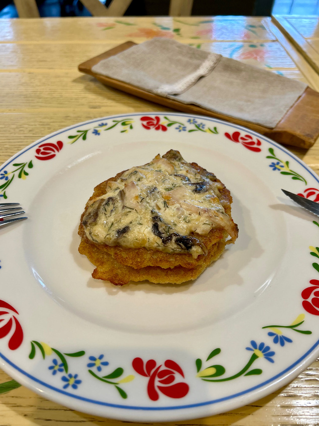 Давно не была в «Васильках. Зашла на обеденные драники. Драники вкусные, правда порция маленькая и сырно-сливочная шапочка с ветчиной и грибами совсем тоненькая. Но за то, что драники не жирные, не пережаренные и блюдо вкусное оценку снижать не стану. Хотя поностальгировала по драникам с мачанкой в горшочке, которые здесь когда-то подавали в обед…...
