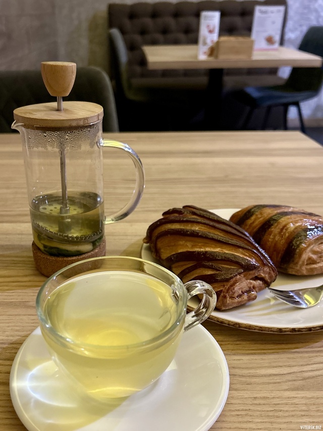 Для меня это кафе прежде всего про уют. Очень удачно используется шагаловская тема, в этом молодцы конечно. Оформление меню, интерьер самого зала, арт-завтраки, летом здесь всегда самая красивая терасса и очень милый сезонный уличный домик. Осенью можно посидеть в живописном интерьере за сезонным круачино. Фото, конечно, сильно преувеличивает размеры, на самом деле круассанчик совсем уж мини, но все так мило и мимишно. Настроение поднимает и это самое главное...