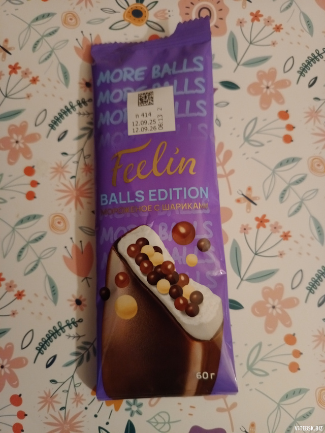 Наверное, ажиотаж вокруг этого мороженого спал и к тому же прохладно на улице, так что это мороженое уже не так быстро разбирают. И мне посчастливилось приобрести в Грине уже ставшее знаменитым - мороженое Feelin c шариками внутри. Много была наслышана про это мороженое, но ни р азу до этого момента оно мне на глаза не попадалось. Разные были мнения о нем. Купила, попробовала и мне это мороженое очень понравилось, хотя и дороговато стоит - 3,39 за 60 грамм. Мороженое само не приторное и не химозное, шарики внутри - хрустящие. Мне это мороженое понравилось. Надеюсь, смогу в ближайшем будущем приобрести и другие вкусы этого мороженого...